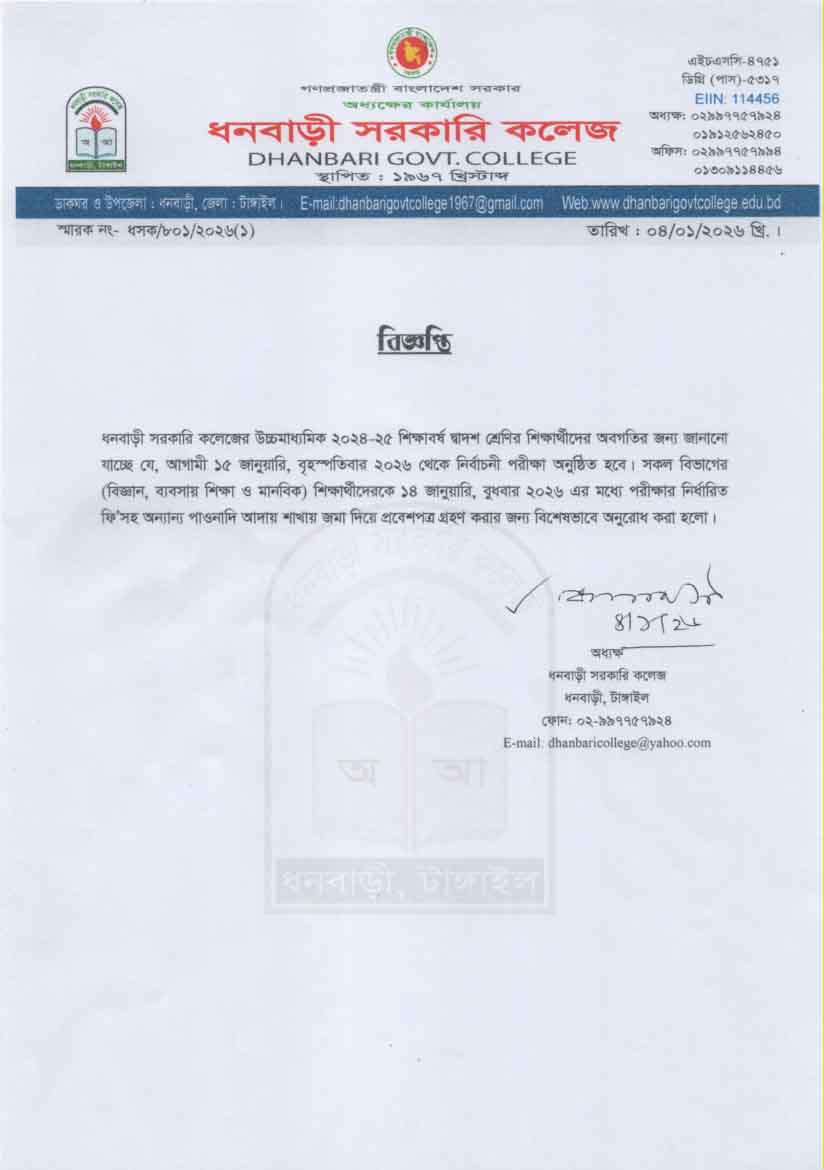 ২০২৪-২০২৫ শিক্ষাবর্ষে ১ম বর্ষ স্নাতক (পাস) ভর্তি কার্যক্রমে ২য় ও সর্বশেষ রিলিজ স্লিপের মেধা তালিকা প্রকাশ ও ভর্তি সম্পর্কিত জরুরী বিজ্ঞপ্তি। |