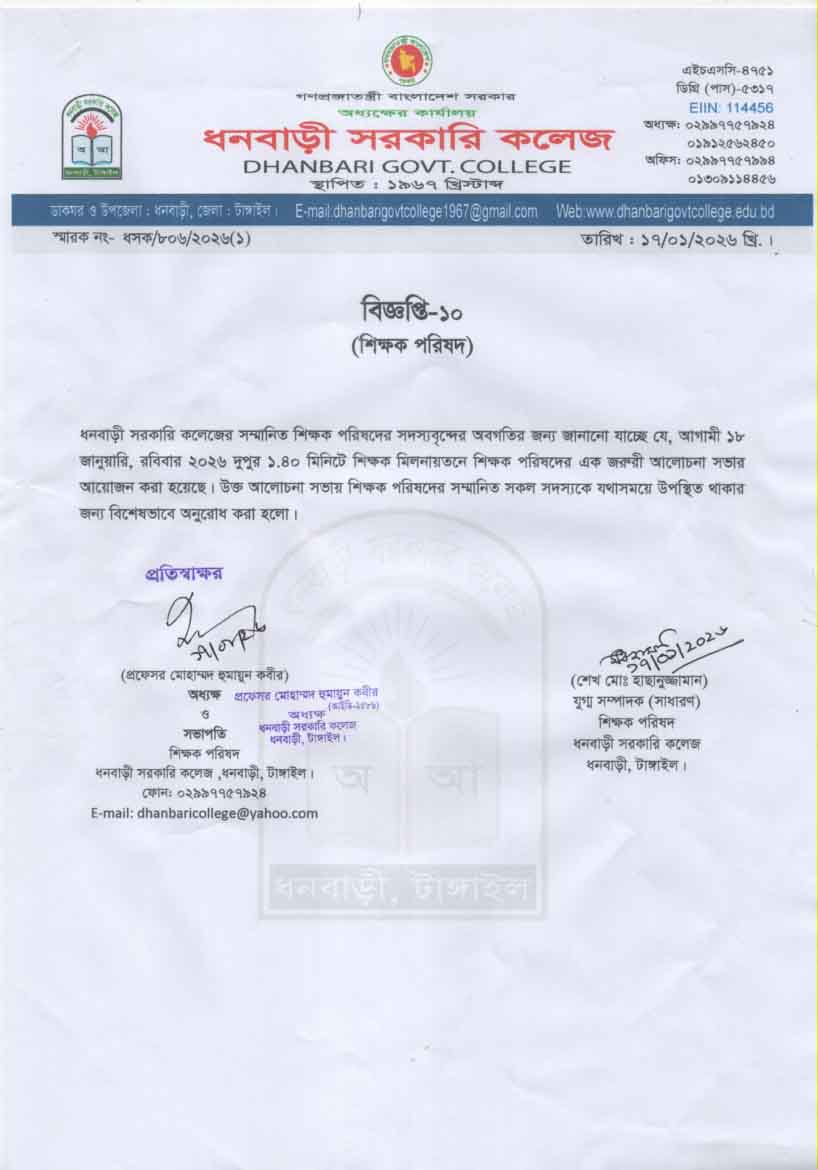 শিক্ষক পরিষদের জরুরী আলোচনা সভার বিজ্ঞপ্তি প্রসঙ্গে। |
